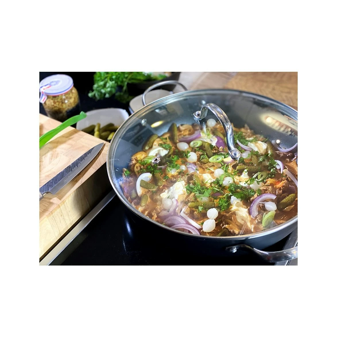 – Slidstærk non-stick belægning for også at kunne anvendes med stålredskaber.